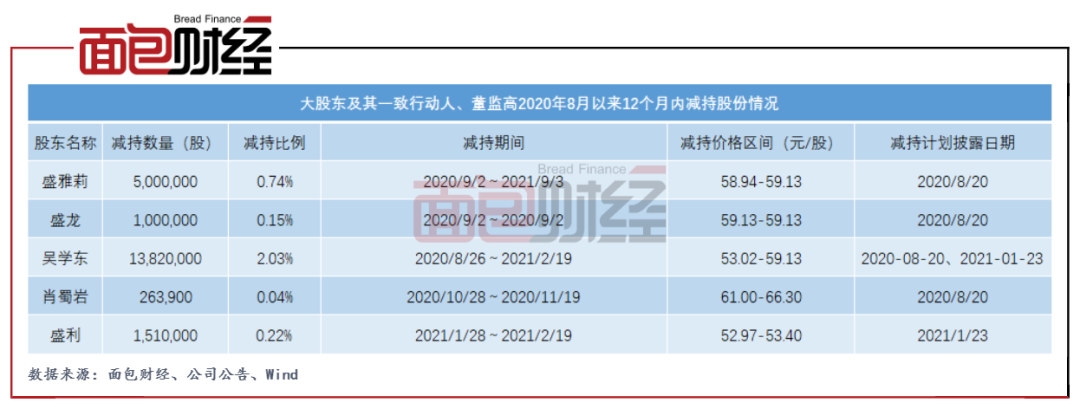 除了此次減持,桃李面包大股東及其一致行動(dòng)人、董監(jiān)高自2020年8月以來的12個(gè)月內(nèi)合計(jì)減持2159.39萬股。按照減持價(jià)格區(qū)間中值測(cè)算,這些股東在此期間累計(jì)套現(xiàn)超過12億元。