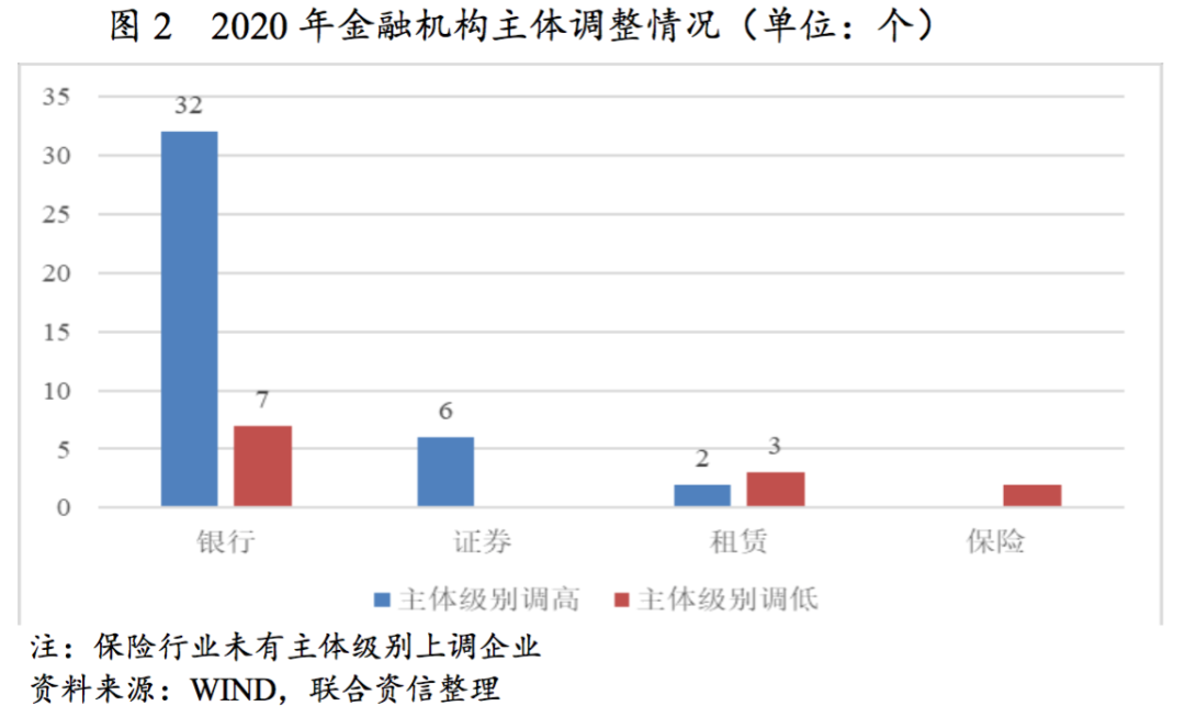 ?2020年商業(yè)銀行和證券公司債券發(fā)行量占金融債發(fā)行總量90%左右,證券公司債券融資規(guī)模占比有所上升;金融機構(gòu)主體級別上調(diào)主要多為股東增資或企業(yè)股東背景發(fā)生實質(zhì)性向好變化,級別下調(diào)主要多為股東結(jié)構(gòu)混亂導(dǎo)致經(jīng)營出現(xiàn)困難、資產(chǎn)質(zhì)量惡化。