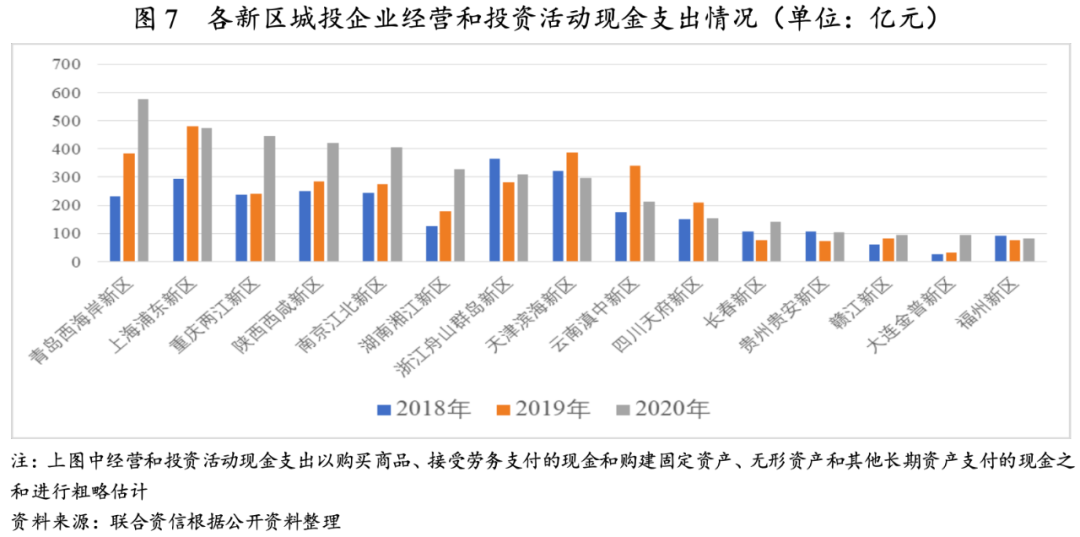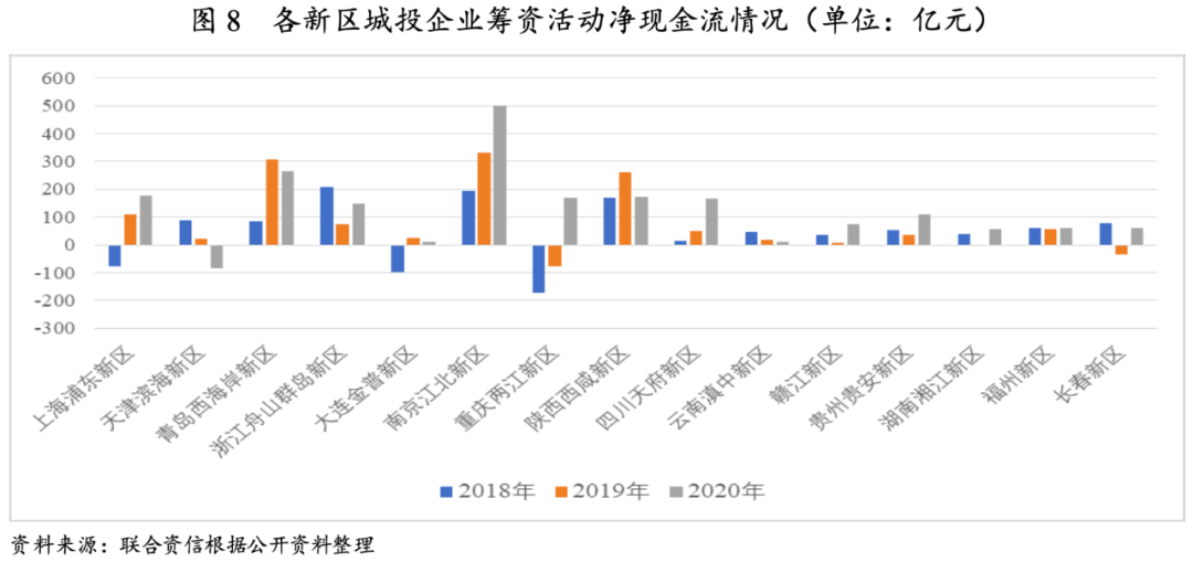 國家級新區(qū)整體存在較大融資需求,各新區(qū)城投企業(yè)投資需求不同且資金投向有所分化。伴隨著新區(qū)開發(fā)建設的逐步推進,絕大多數(shù)新區(qū)城投企業(yè)籌資活動呈凈流入狀態(tài)。