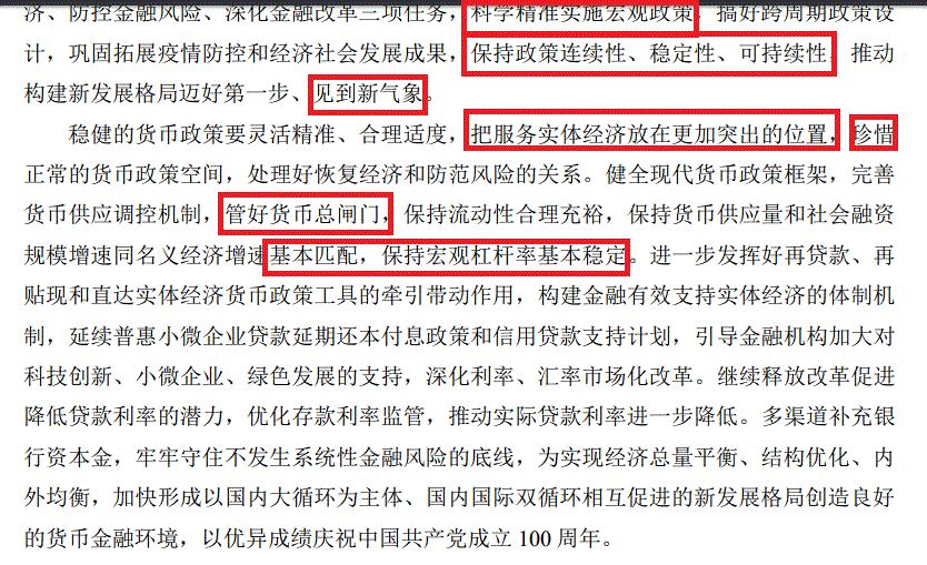 比如也包括貨幣政策,每個(gè)季度會(huì)發(fā)布一次貨幣政策執(zhí)行報(bào)告,《中國(guó)區(qū)域金融運(yùn)行報(bào)告》作為一份年度報(bào)告,對(duì)2021年的貨幣政策自然要發(fā)表央行的官方意見。
