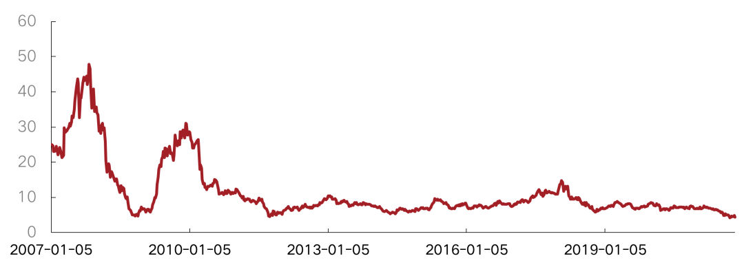 注:恒生中國內地地產指數(shù)的推出主要是為了反映前10只市值最大、流通性最高,在香港上市但主要營業(yè)收入來自中國內地的房地產股票表現(xiàn)。當前成分股共10只,分別為:中國金茂、中國海外發(fā)展、世茂集團、龍湖集團、華潤置地、龍光集團、碧桂園、中國恒大、碧桂園服務、融創(chuàng)中國