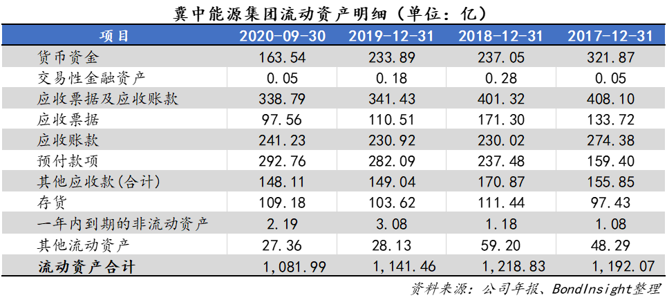 自2020年7月份,公司在9個月內(nèi)累計(jì)兌付61只債券本息647億元。債券余額已從去年初的740.6億元降至204.9億元,半年多兌付了500多億元債券,還款意愿較強(qiáng)。從冀中能源集團(tuán)的自身能力來看,其2020年三季度末賬面貨幣資金26億元,主要依賴地方政府支持才能順利兌付。