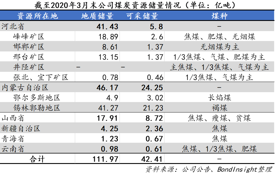 公司是河北省最大的煤炭企業(yè),總部所處礦區(qū)為國家重點(diǎn)建設(shè)的大型煤炭基地,但河北省有效可采儲量逐年減少,截至2020年3月末河北省可采儲量合計(jì)僅余5.8億噸,未來將較依賴外省資源。內(nèi)蒙古及山西產(chǎn)區(qū)可采儲量較多,分別為24.25億噸及8.72億噸,但內(nèi)蒙古產(chǎn)區(qū)主要煤炭種類為長焰煤及褐煤,不同于公司主要煤種焦煤,預(yù)計(jì)在一定程度上拉低其整體毛利率。