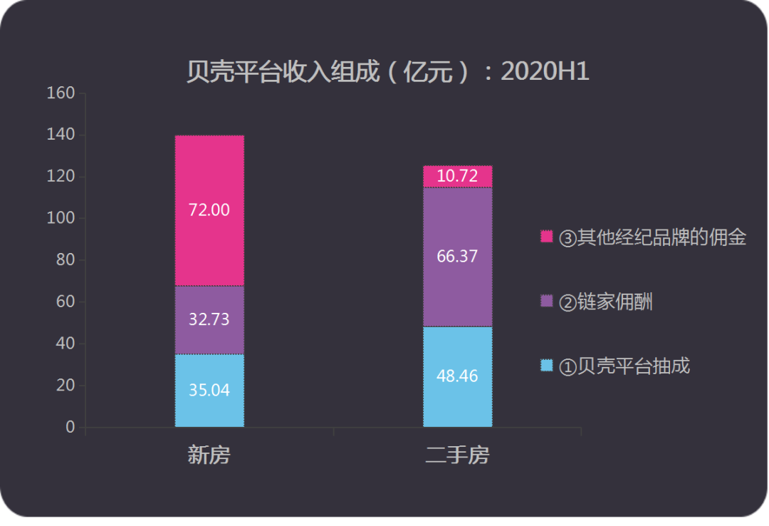 其他品牌貢獻了近一半的GTV,但拿到的傭金只占1/10不到。貝殼的二手房業(yè)務(wù)的收入主要還是依靠鏈家。