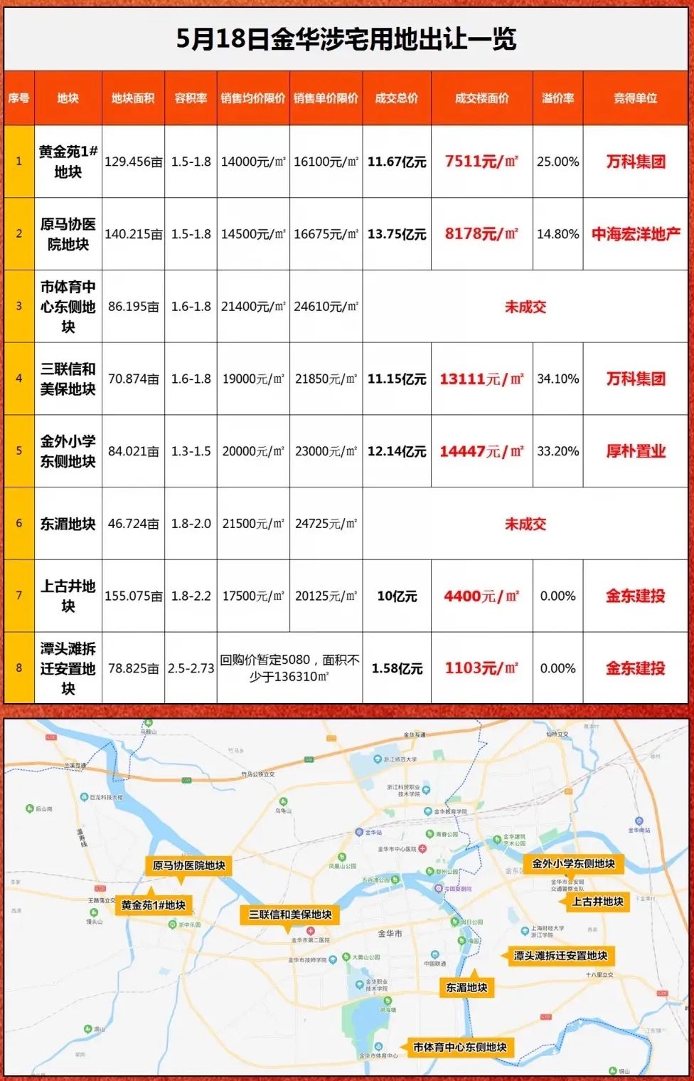 5月18日,金華第一批限價(jià)地塊完成集中出讓,其中2宗政府托底、2宗流拍、4宗成交
