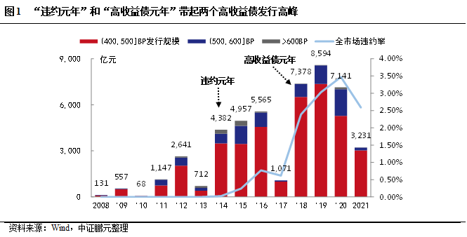 “違約元年”和“高收益債元年”帶來兩個高收益債發行規模高峰