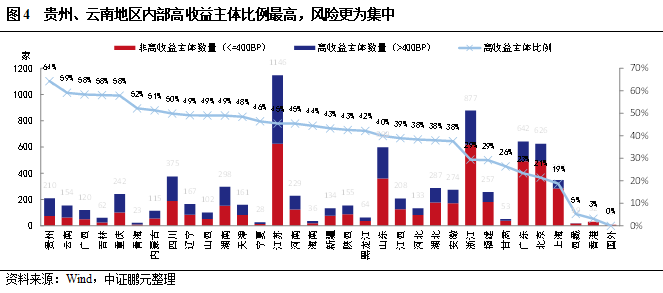 地區方面,有三類地區可以進行投資價值挖掘:第一,江蘇、浙江這兩個高收益主體大省,其發行基數大,可選擇標的較多,而高收益主體又較為分散,違約率相對較低;第二、有一定數量的高收益主體,且高收益主體比例不高,但違約率低于均值的地區,例如:湖北、四川、江西等;第三類,貴州、云南、湖南等網紅地區,風險集中度高,但目前違約率極低,這類地區容易形成堰塞湖,一旦口子撕開,或將導致大面積違約事件,建議風險偏好較低、或持有到期的投資者規避,對于風險偏好較高的高收益投資者可以在充分信用挖掘的基礎上進行短期限投資。以上三類投資標的的安全邊際依次遞減。