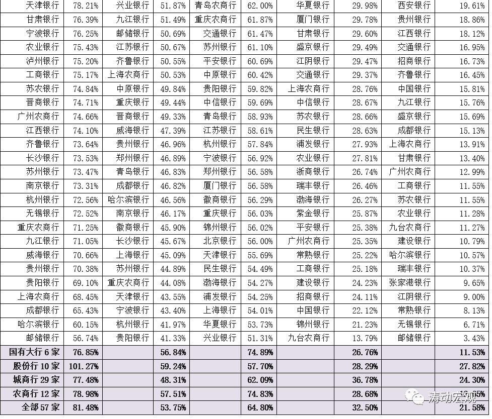 1、上市銀行的存貸比平均水平為81.46%,較2020年底的80.54%繼續上升。其中,股份行最高(達到101.27%)、國有大行最低(76.85%)。其中,8家銀行的存貸比超過100%,5家銀行的存貸比位于90-100%之間。