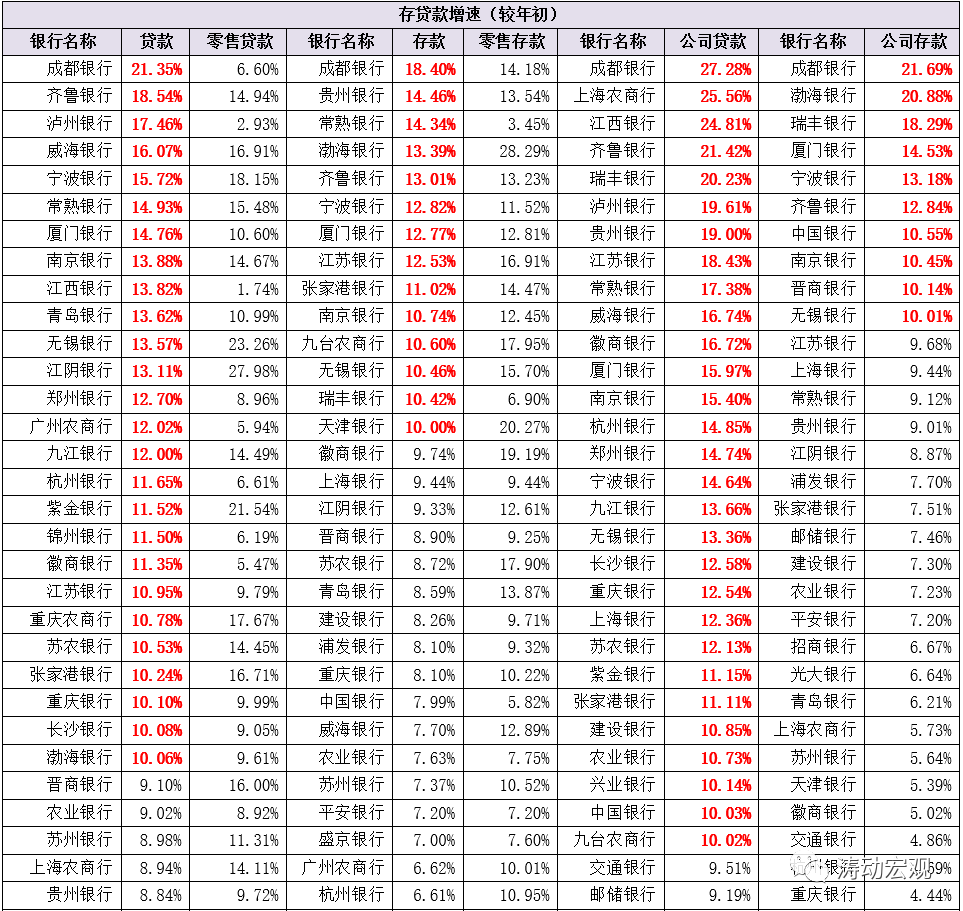 (二)今年上半年,國有大行、股份行、城商行與農商行的存款增速分別為6.89%、5.34%、7.61%與8.81%,零售存款增速分別為7.39%、7.25%、11.50%與11.24%,公司存款增速分別為7.11%、5.39%、4.72%與4.57%。