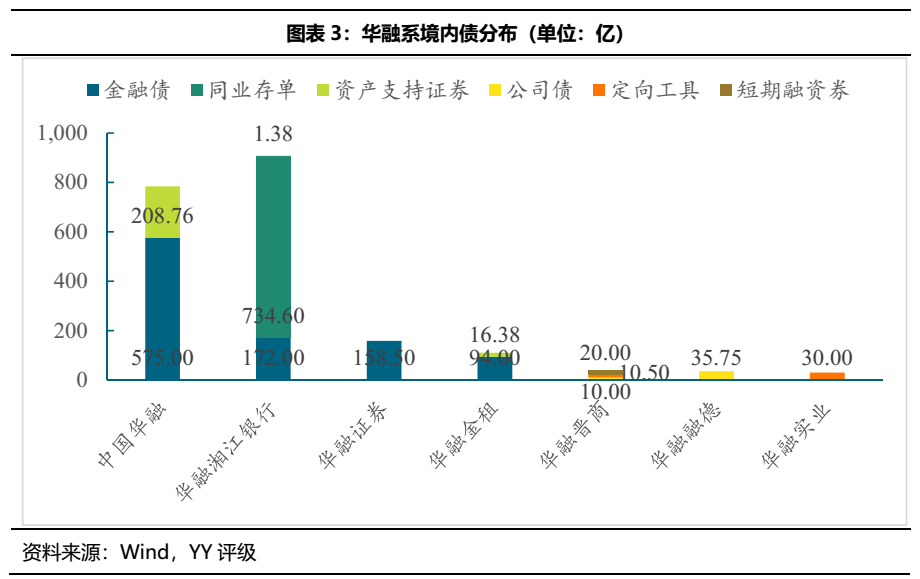 華融系目前有存續(xù)債的公司共13家,除中國(guó)華融自身以外,另有6個(gè)一級(jí)子公司、3個(gè)二級(jí)子公司、3個(gè)三級(jí)子公司有存續(xù)債,此外中國(guó)華融和華融金控均為港股上市公司。