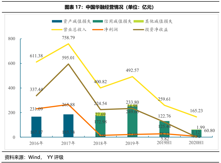 從經(jīng)營(yíng)來(lái)看,中國(guó)華融2018年?duì)I收大幅下降47.18%,凈利潤(rùn)更是從265.88億元大幅縮水至15.09億元。2019年經(jīng)營(yíng)業(yè)績(jī)有所好轉(zhuǎn),但相較于17年前大幾百的凈利潤(rùn)仍是相距甚遠(yuǎn)。16年以來(lái)中國(guó)華融各類(lèi)減值損失呈增長(zhǎng)趨勢(shì),2019年合計(jì)264.64億元,對(duì)利潤(rùn)侵蝕嚴(yán)重。
