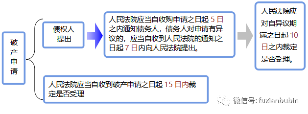 根據(jù)《企業(yè)破產(chǎn)法》第10條規(guī)定,參照北京市高級人民法院《企業(yè)破產(chǎn)案件審理規(guī)程》第35條。如果是債權(quán)人申請破產(chǎn),人民法院應(yīng)當(dāng)在收到破產(chǎn)申請后5日內(nèi)通知債務(wù)人,向債務(wù)人送達(dá)破產(chǎn)申請書及申請材料的副本,債務(wù)人如對債權(quán)人的申請有異議的,應(yīng)當(dāng)在收到人民法院通知后7日內(nèi)向人民法院提出。債務(wù)人度申請有異議的,可以就申請破產(chǎn)的債權(quán)的真實性,債務(wù)人是否不能清償?shù)狡趥鶆?wù)等向人民法院提出,并提交相關(guān)的證據(jù)材料。人民法院對債務(wù)人的異議進(jìn)行審查后,應(yīng)當(dāng)自異議期滿之日起10日內(nèi)做不予受理破產(chǎn)申請或者受理破產(chǎn)申請的裁定。人民法院不予受理破產(chǎn)申請的,應(yīng)當(dāng)做出書面裁定,并說明不予受理的理由,由此可知,債權(quán)人申請破產(chǎn)的,人民法院審查的期限為22日;需要注意的是,關(guān)于向債務(wù)人送達(dá)破產(chǎn)申請的有關(guān)材料,債務(wù)人下落不明的,可以向債務(wù)人股東、開辦人、履行出資義務(wù)人或?qū)嵖厝怂瓦_(dá);債務(wù)人的股東、開辦人、履行出資義務(wù)的人或?qū)嶋H控制人下落不靈的,可以在受理破產(chǎn)申請的公告中一并送達(dá)。如果是債務(wù)人及負(fù)有清算責(zé)任的人申請破產(chǎn)的,人民法院收到破產(chǎn)申請材料后,應(yīng)在15日內(nèi)裁定是否受理,如人民法院認(rèn)為債務(wù)人向人民法院提交的破產(chǎn)申請材料不符合《企業(yè)破產(chǎn)法》及有關(guān)法律的規(guī)定而要求債務(wù)人補充提交材料的,則15日內(nèi)裁定是否受理的期限應(yīng)當(dāng)自該補充提交材料提交完畢時開始計算,也就是說,對債務(wù)人、負(fù)有清算責(zé)任的人申請破產(chǎn)的,人民法院決定是否受理的審查期限為15日。