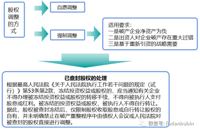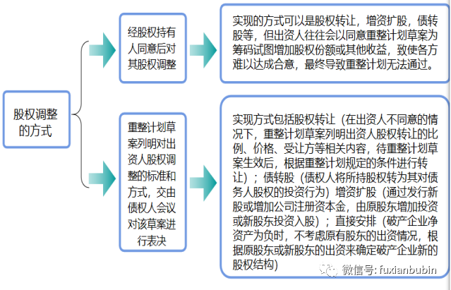 三是股權(quán)轉(zhuǎn)讓的限制及股權(quán)調(diào)整方案。債務(wù)人出資人不得請求投資收益分配;除經(jīng)人民法院同意,董監(jiān)高不得向第三人轉(zhuǎn)讓所持股權(quán)。股權(quán)調(diào)整是重整計劃草案中債務(wù)人經(jīng)營方案的重要內(nèi)容,通過股權(quán)的調(diào)整籌措資金,引入新的投資者,或改變公司的經(jīng)營控制結(jié)構(gòu)已成為實務(wù)中債務(wù)人重整的普遍做法。