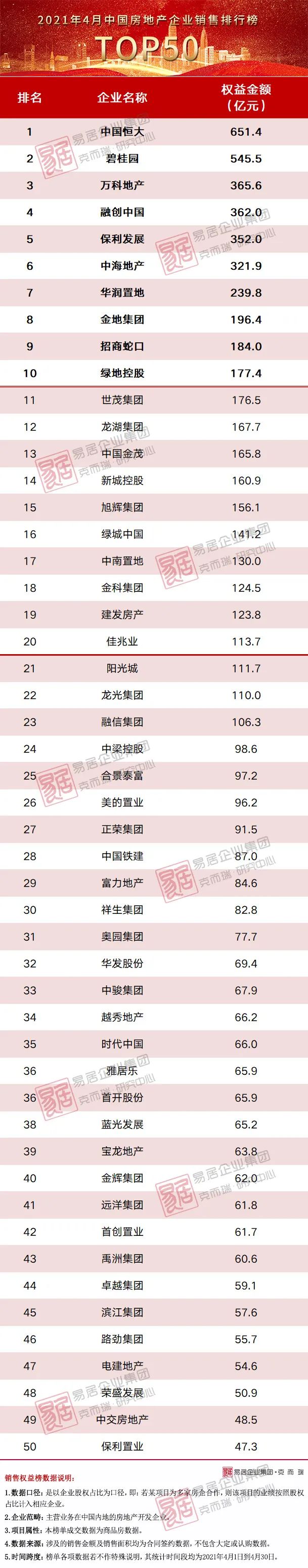 此外,1-4月已有7家房企銷售操盤金額突破千億元,比2020年同期增加了4家;若以全口徑銷售金額計算,千億陣營已達9家,比2020年同期增加了5家。