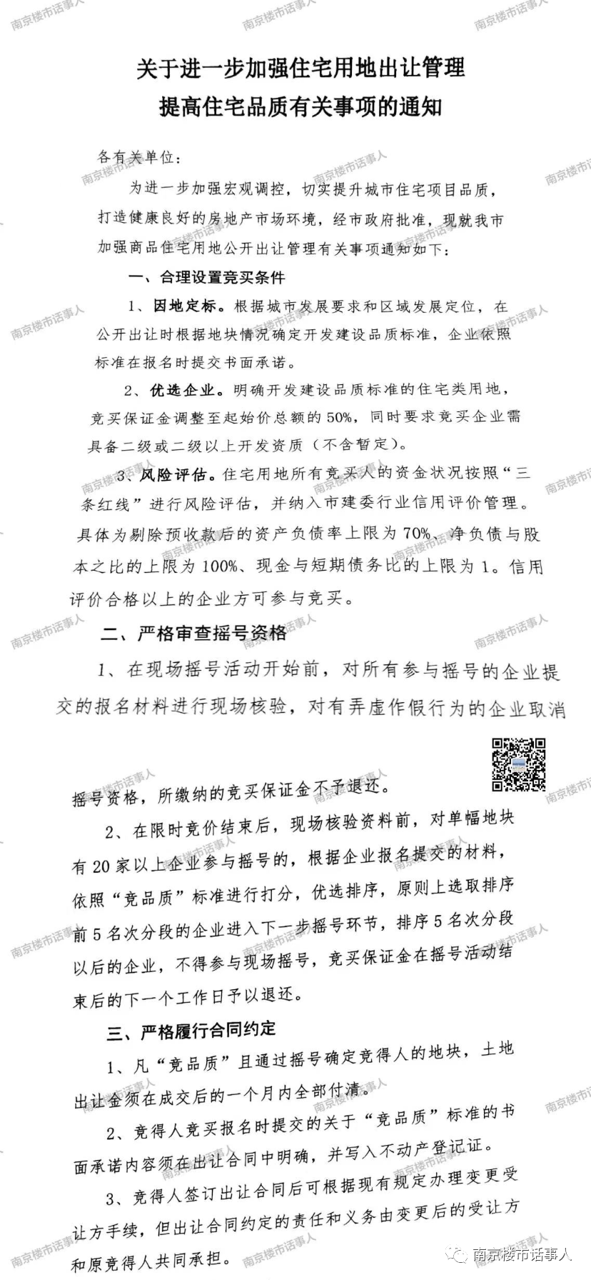 根據(jù)細(xì)則,南京的競(jìng)品質(zhì)環(huán)節(jié)大概率是在限時(shí)競(jìng)價(jià)結(jié)束之后,對(duì)于單幅超過(guò)20家以上搖號(hào)的,根據(jù)企業(yè)提交的材料按照“競(jìng)品質(zhì)”要求打分,選定出前5名參與搖號(hào)。