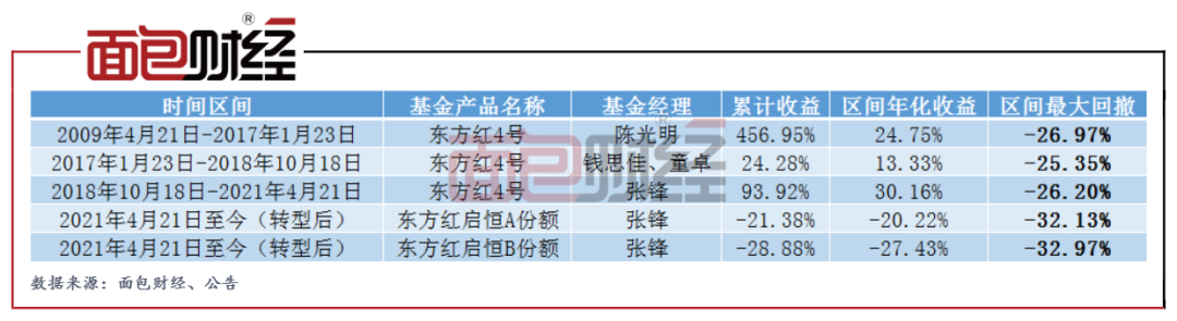 變更后,原東方紅4號集合的份額變更為東方紅啟恒A類基金份額。同時增設B份額,供投資者申購。該基金于2021年4月21日成立,張鋒繼續擔任基金經理。