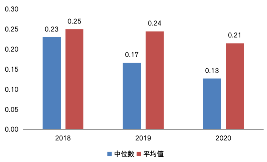圖:27家房企2018-2020年凈現(xiàn)比中位數(shù)及平均值