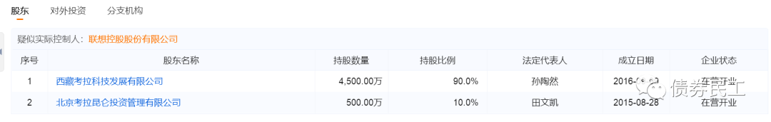 北京中北聯(lián)信用評(píng)估有限公司(以下簡(jiǎn)稱“中北聯(lián)信評(píng)”)成立于2015年11月18日,注冊(cè)資本為5000萬(wàn)元,公司的控股股東是西藏考拉科技發(fā)展有限公司,實(shí)際控制人是聯(lián)想控股股份有限公司。