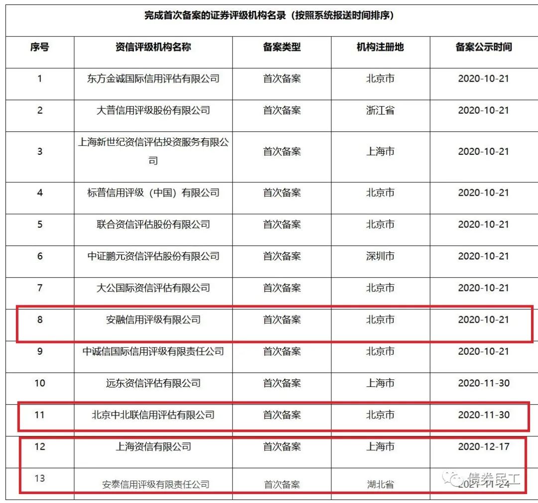 中北聯(lián)信評(píng)首次亮相是在中國(guó)證監(jiān)會(huì)2020年11月30日公布的《完成首次備案的證券評(píng)級(jí)機(jī)構(gòu)名錄》中,已經(jīng)可以從事交易所債券產(chǎn)品的信用評(píng)級(jí)。中北聯(lián)信評(píng)和安融信用評(píng)級(jí)有限公司、上海資信有限公司和安泰信用評(píng)級(jí)有限責(zé)任公司等均屬于評(píng)級(jí)機(jī)構(gòu)新勢(shì)力。