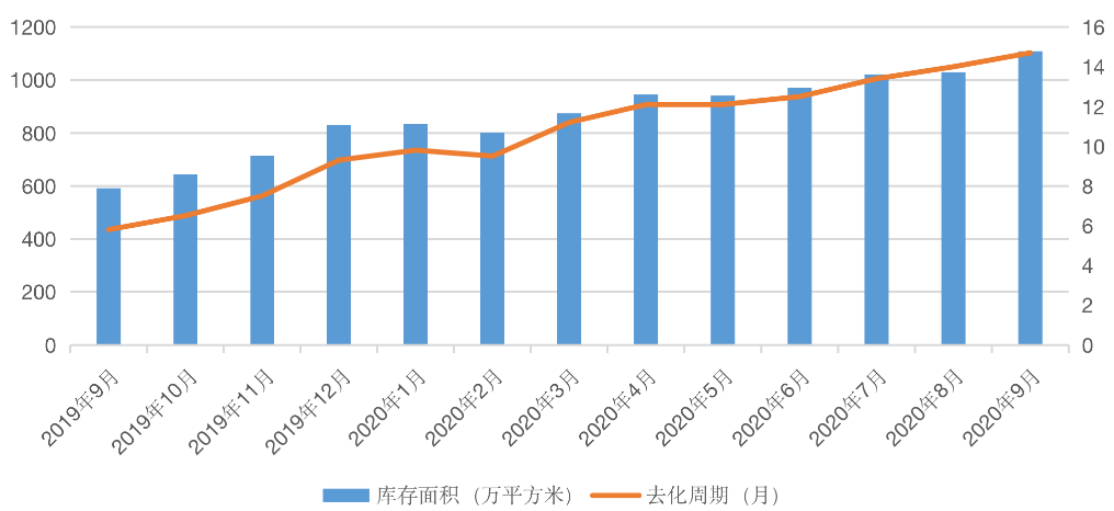 和天津新房市場(chǎng)情況相似,鄭州也面臨著巨大的庫(kù)存壓力??硕饠?shù)據(jù)顯示,截至2020年9月,鄭州新房庫(kù)存面積已到1108.8萬(wàn)平方米,去化周期從去年9月的5.8月變成了14.7月。