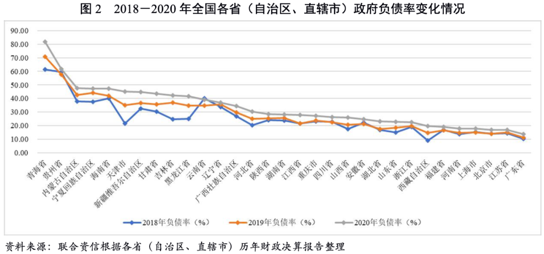 2018-2020年,湖北省政府債務余額規模持續增長。截至2020年末,湖北省政府債務余額居全國第9位。2018-2020年,湖北省負債率和債務率均持續上升。2020年,湖北省負債率在全國各省(自治區、直轄市)中排名第10位,債務率在全國各省(自治區、直轄市)中排名第12位,湖北省政府債務負擔以及償債能力均處于全國中游水平,整體債務風險較低。