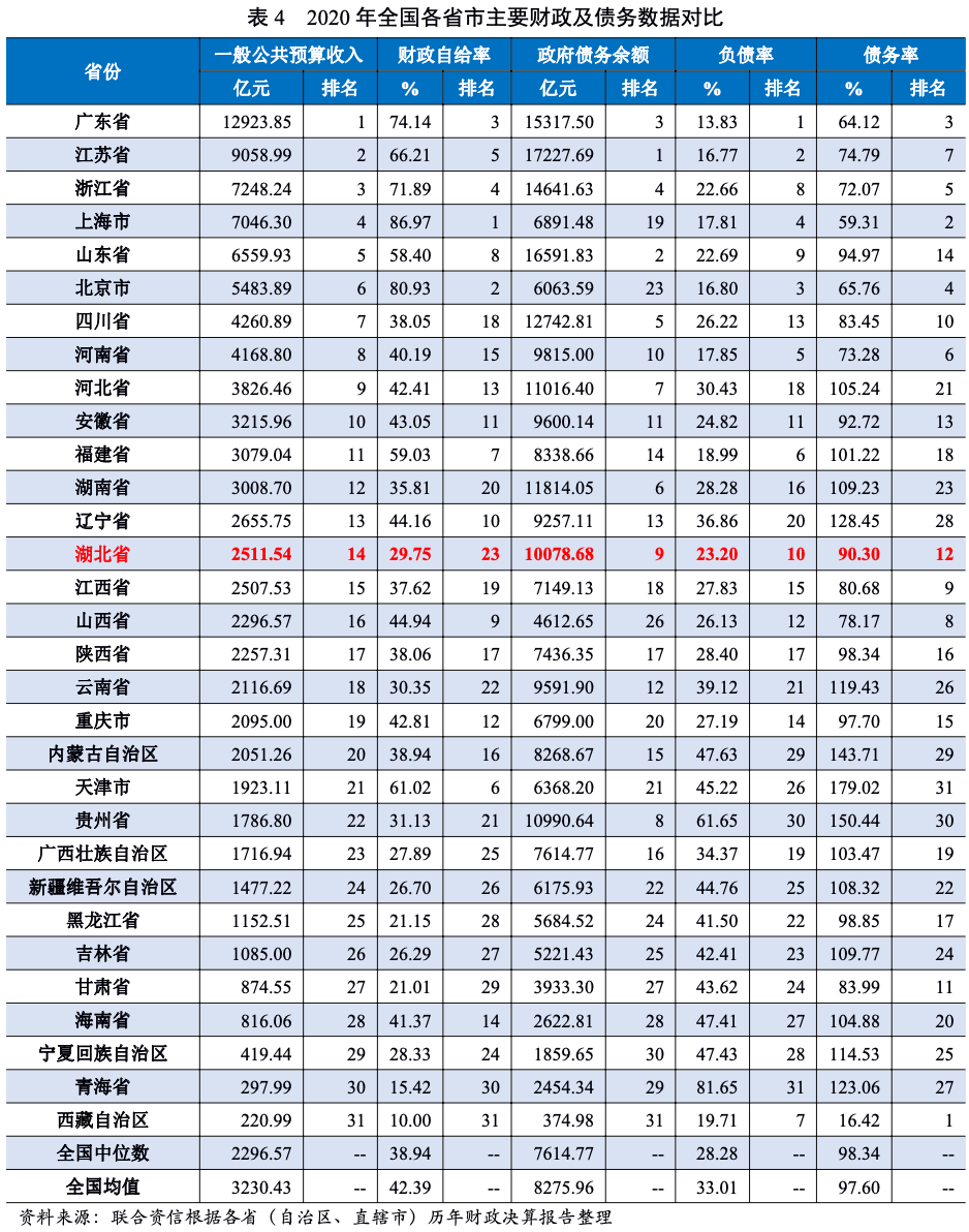 2.湖北省財政實力及債務情況