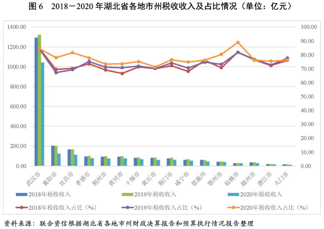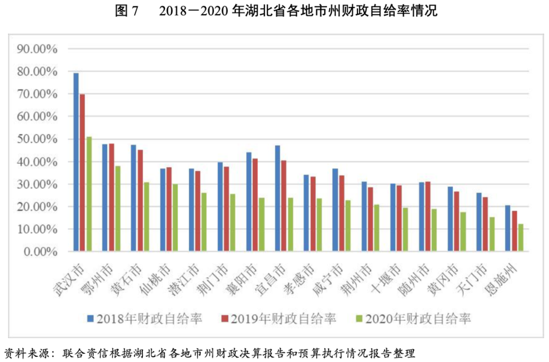 3.湖北省各地市州財政收入對發債城投企業債務的支持保障能力