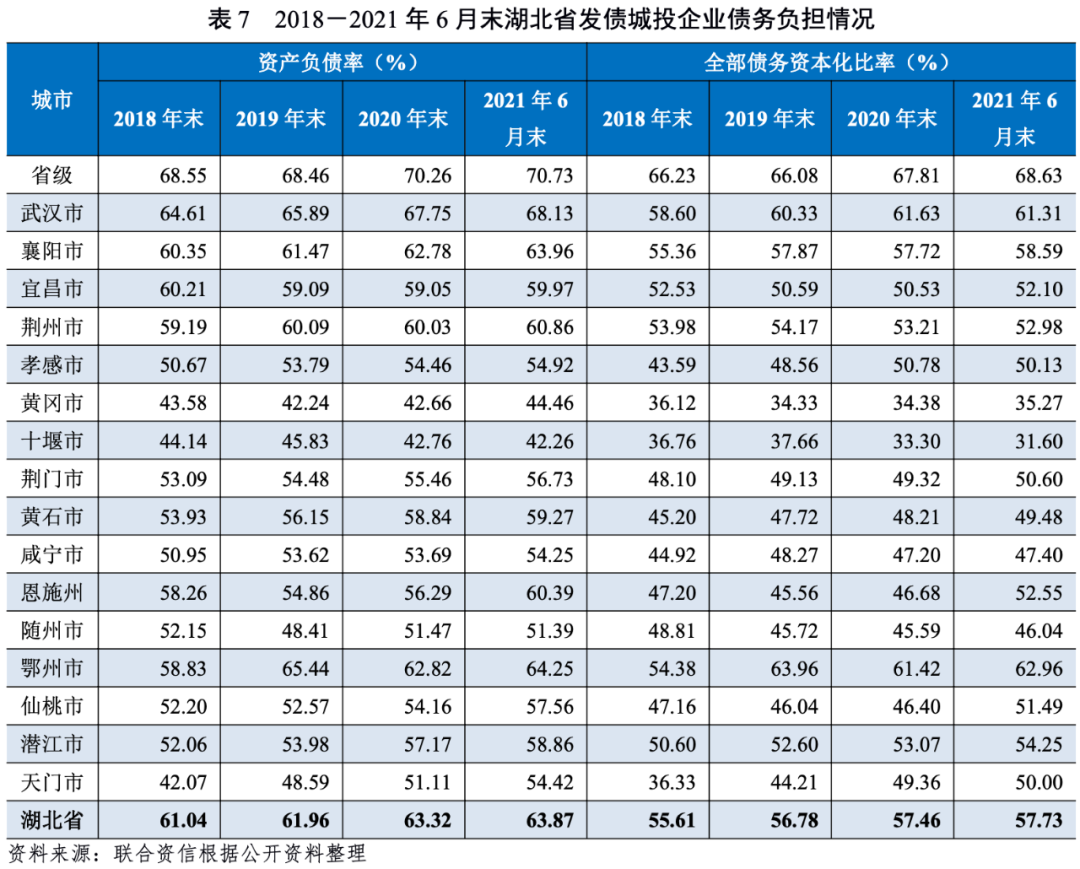 三、湖北省城投企業償債能力