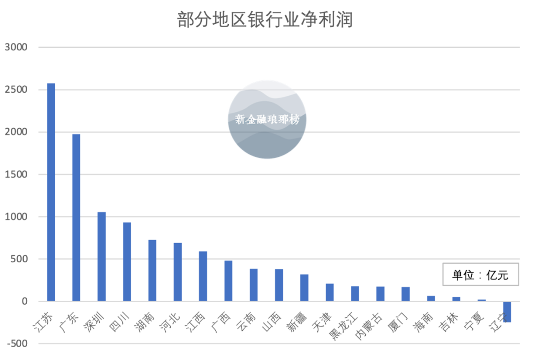 從公布了凈利潤數(shù)據(jù)的區(qū)域來看,江蘇與廣東(不含深圳)最為突出,分別為2574.55億元、1972.98億元,深圳銀行業(yè)凈利潤也達到1055.23億元(雖然同比縮水超兩成)。這意味著,廣東省銀行業(yè)去年實現(xiàn)了3000億元凈利潤,占全國的比重達到12%。