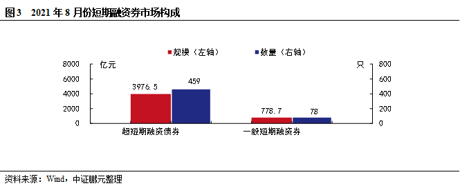 8月發行的中期票據中包括長期限含權中期票據73只,發行規模602.5億元。8月發行的短期融資券中包括超短融(SCP)459只,發行規模3,976.5億元。
