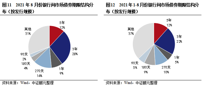 五、8月銀行間市場債券期限集中度同比下降,主要期限的發行規模占比較7月上升