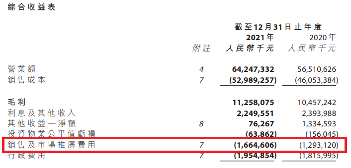 另外,銷售和市場推廣費用增加明顯,從2020年的12.93億元,增加29%,至16.65億元。