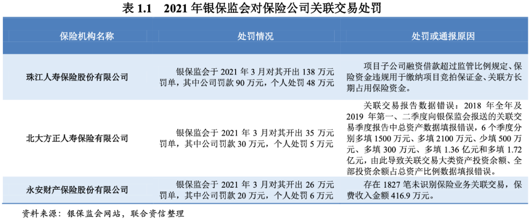 二、2021年以來銀保監會對保險公司關聯交易處罰及通報情況