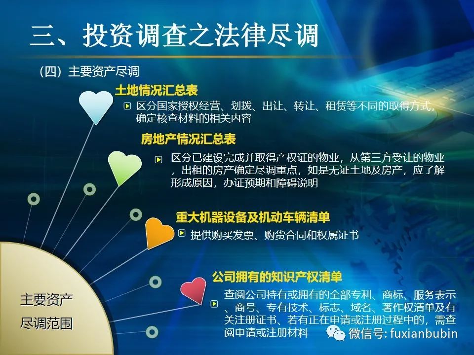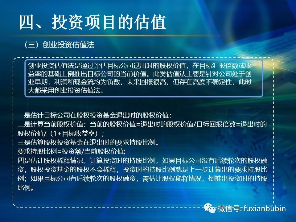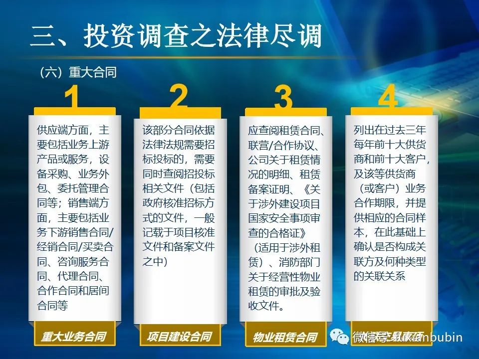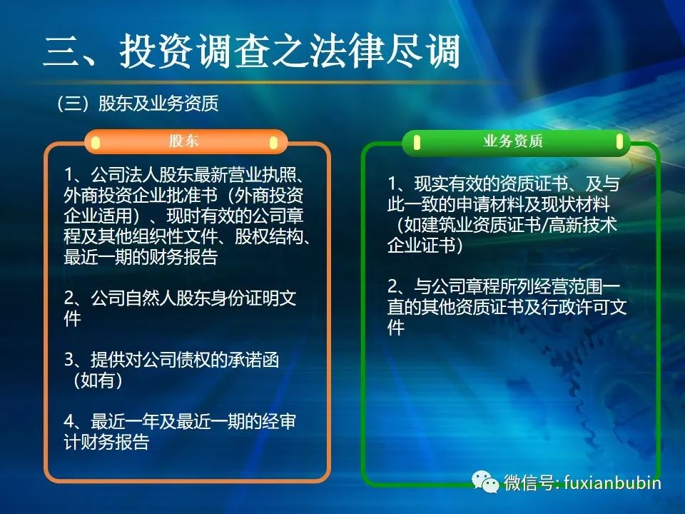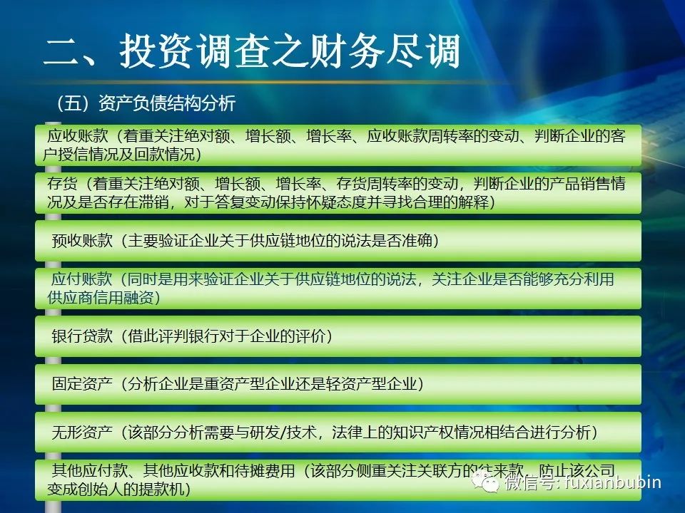 私募股權投資基金的投資工作,其業務流程主要圍繞投資決策開展,通常包括項目開發與篩選,初步盡職調查,項目立項、簽訂框架投資協議、盡職調查、投資決策、簽署投資協議、投資交割等主要環節。在這一過程中,財務盡調主要關注目標公司的歷史財務業績的情況,并對未來財務狀況進行合理預測。調查內容包括企業的歷史經營業績,未來盈利預測、營運資金、融資結構、資本性開支以及財務風險敏感度分析等。其作用在于為投資及整合方案設計、交易談判、投資決策提供支撐,進而判斷投資是否符合戰略目標及投資原則。法律盡職調查是對相關法律事務具有法律意義的背景資料進行應有的調查,使相關法律事務的處理建立在客觀、全面的信息基礎之上,以確保相關法律事務的處理能夠達到預期的結果,而不因相關信息在真實性、完整性、全面性、合法性等方面的原因影響預期目標的實現。經過財務盡調與法律盡調,在股權投資之前,需要考慮該項投資的性質、事實和背景,為之選擇恰當的估值方法,并結合市場參與者的假設,采用合理的市場數據和參數對目標公司進行估值,明確目標公司的公允價值。