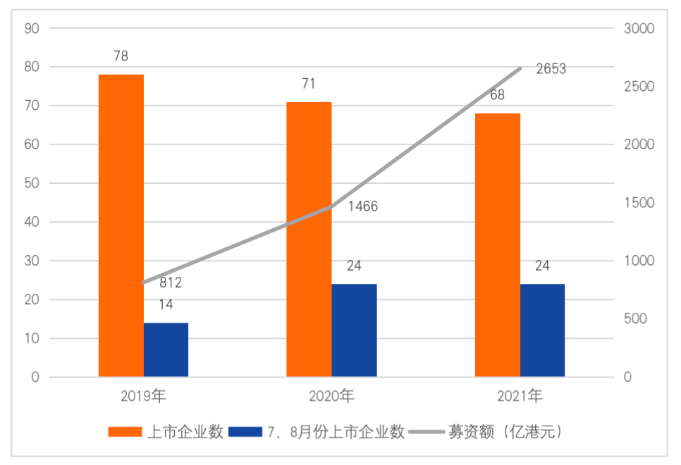 圖1 近三年中國企業赴港上市數量及募資額