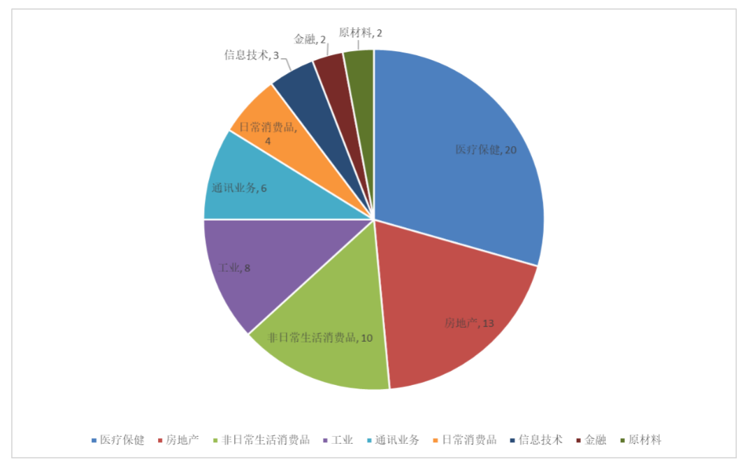 從企業所屬行業來看,分布行業相對較廣泛,根據GICS(全球行業分類系統)分類標準,共有9種一級行業。具體分布情況如下: