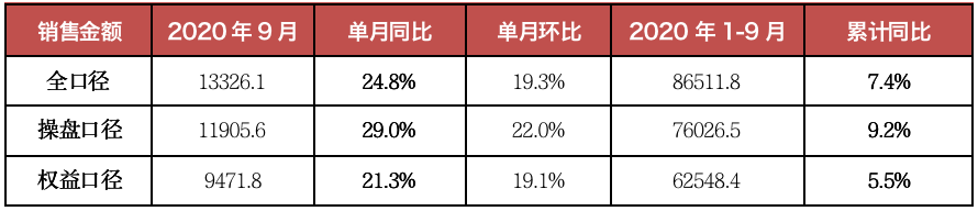 備注:操盤金額集中度=入榜房企操盤銷售金額/統計局公布的全國商品房銷售金額,其中,2020年前三季度全國商品房銷售金額是根據前8月累計同比增幅推算9月同比增幅所得。