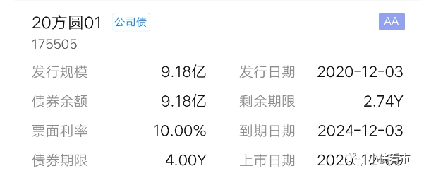 《小債看市》統計,在離岸債券方面,目前方圓地產存續1只美元債,存續規模3.4億美元,將于2023年7月27日到期。