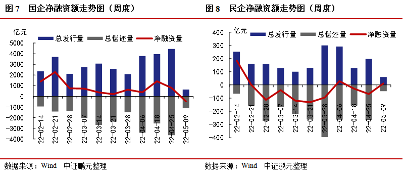 上周民企發(fā)行規(guī)模為59.80億元,較前一周下降70%,償還規(guī)模為47.70億元,較前一周減少82%,凈融資12.10億元。