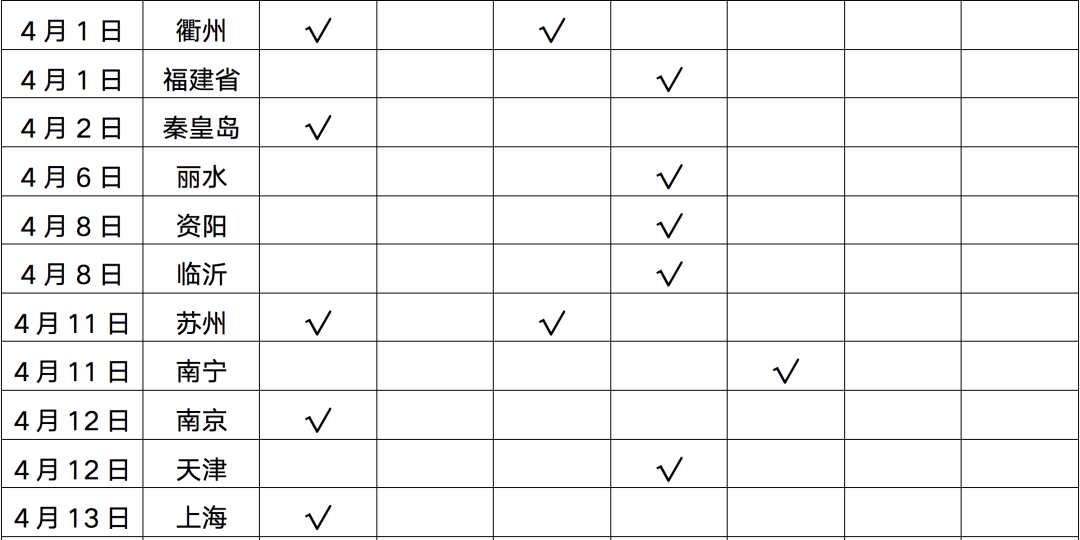 進(jìn)入4月,南京、蘇州等強(qiáng)二線城市跟進(jìn)放松限購,放松限購城市已達(dá)12城。比如南京,非戶籍家庭在六合、溧水兩區(qū)購買首套房,無需提供社?;騻€(gè)稅證明,衢州、秦皇島更是全面取消限購。