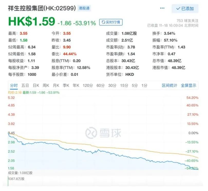 跌超50%,股價跌破至1.6港元,市值直接蒸發50多億港元,僅剩48.4億港元。