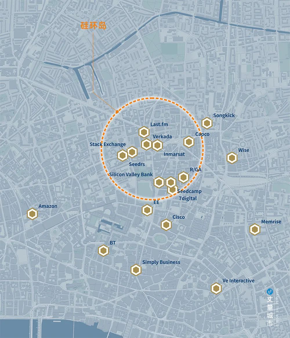 直到1990年代,實(shí)施至今的三輪更新,才扭轉(zhuǎn)區(qū)域的命運(yùn)。如今這里已是英國科技企業(yè)最密集(已超過1600家)、全球人才密度最高的創(chuàng)新區(qū)。
