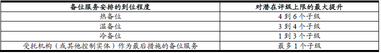 表一 合格“備位服務(wù)”下潛在評(píng)級(jí)上限的最大提升