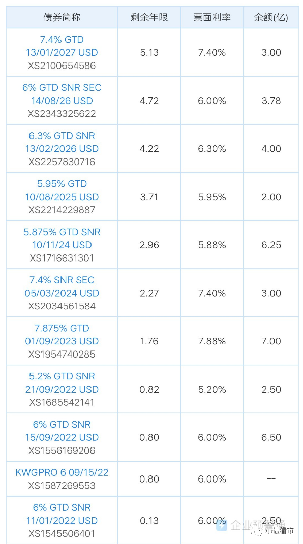 本月初,合景泰富集團償還了30億元熊貓債券,其在2022年末前還有160億元到期或可贖回債券,其中包括2022年1月到期的2.5億美元債,以及2022年9月到期的9億美元債。