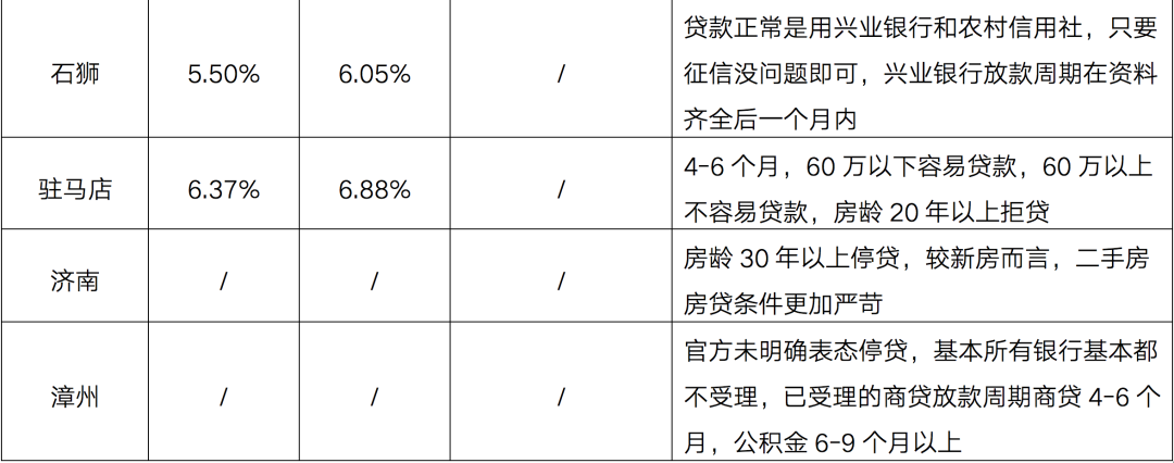 即便是尚未停貸城市,多數放款周期也在3-6個月,較上半年有不同程度的延長,同時銀行方面也加強了貸款監管,關于貸款額度,抵押房屋的房齡等都有明確要求,整體二手房的貸款難度大于新房貸款。